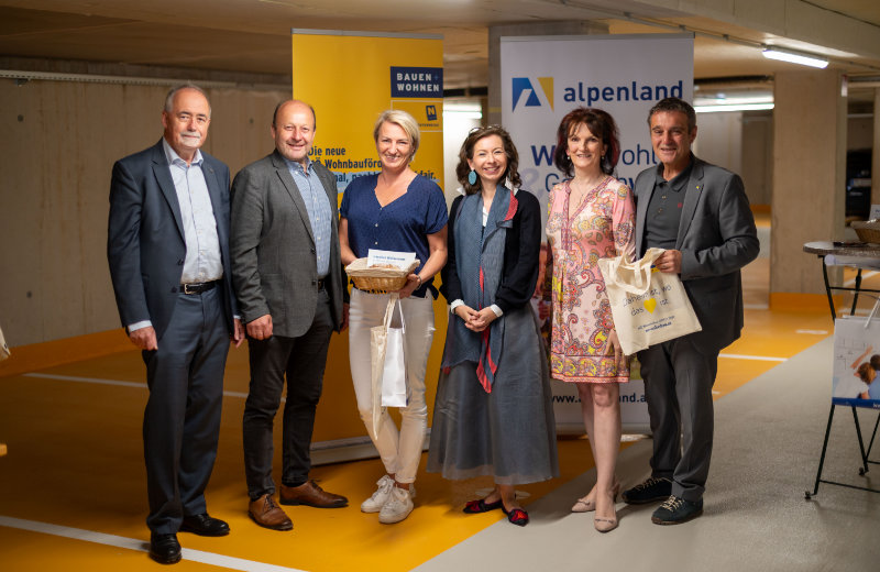 V.l.n.r.: Alfred Janecek, Alpenland Aufsichtsrat, Bürgermeister Franz Aigner, Dorota Nawrot-Dowlasz, Mieterin, Isabella Stickler, Alpenland Obfrau, Theresa Reiter, Alpenland gf. Vorstandsmitglied und NÖ LAbg. Anton Erber © Josef Herfert