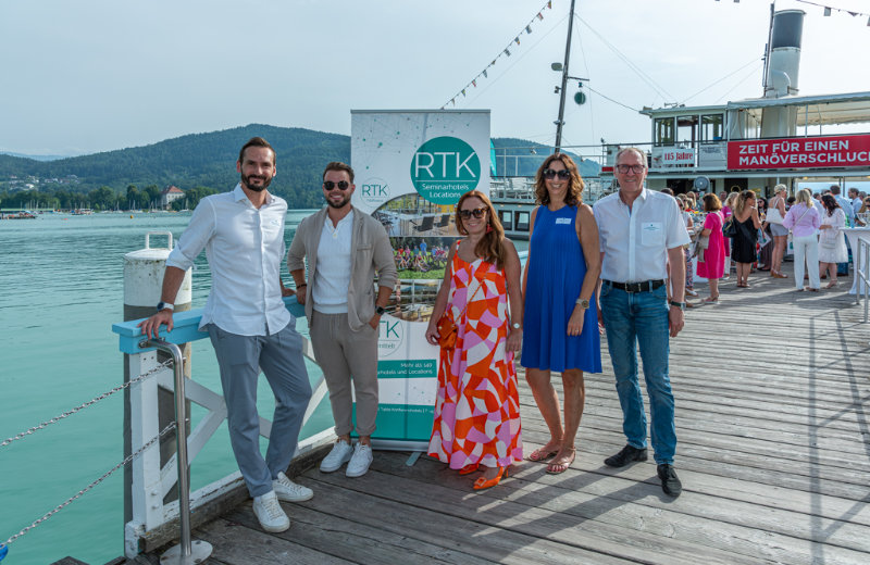 Der Geschäftsführer der Wörthersee Schifffahrt, Daniel Dörfler, verwies auf die über 150-jährige Tradition der Personenschifffahrt am Wörthersee, die bis heute gepflegt wird. Von Klagenfurt bis Velden und retour ging es für die Gäste und Aussteller:innen des RTK-Events. Nach dem Empfang hieß es "Alle an Bord" und die MS Thalia legte ab. Im Bug und im Heck gab es Gelegenheit, mit den Aussteller:innen zu netzwerken, wovon die Kund:innen auch Gebrauch machten.