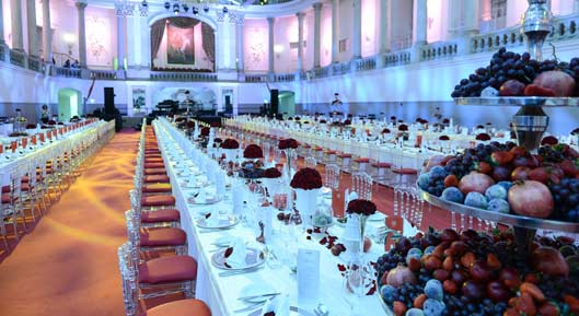Mehr als 20.000 Teilnehmer aus den unterschiedlichsten Nationen haben am 25. ECR (European Congress of Radiology), vom 7. bis 11. März, im Austria Center Vienna teilgenommen. Passend zur Herkunft des Präsidenten José Ignacio Bilbao aus Pamplon fand das Dinner in der Spanischen Hofreitschule, einem der bedeutendsten Kulturgüter Österreichs statt. Die Symbiose mit 1.000 kg frischen Früchten und Blumendekor aus roten Rosen, ließen den barocken Raum der Winterreitschule in einem außergewöhnlich beeindruckenden Ambiente erstrahlen. Um dem Gesamtkonzept das gewisse Etwas zu verleihen, wurde Equipment aus ganz Europa bezogen, wie zum Beispiel, die aus Paris stammenden Etagere. Darüber hinaus wurden eigens angefertigte Tafeln, sowie maßgeschneiderte Stoffe in Szene gesetzt. Das spanischen Flair des Abends begleitend, präsentierte impacts eine vielfältige Menükomposition wie zum Beispiel die Vorspeise, Iberico, Chorizo, Tortilla Espagnola, marinierte Gambas, Manchego & Sauce Aioli und dazu ausgewählte, spanische Weine. Die Besonderheit im Service lag an diesem Abend eindeutig im Servieren der Hauptspeisen mit edlen Gloschen.