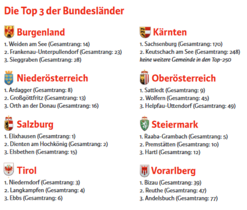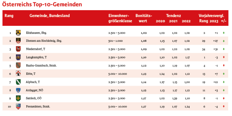 Österreichs Top-10-Gemeinden © KDZ – Zentrum für Verwaltungsforschung