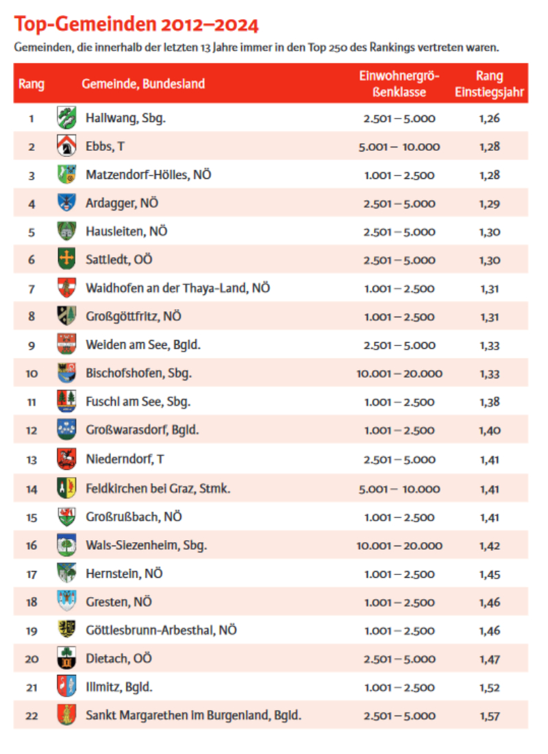 Top-Gemeinden 2012-2024 © KDZ – Zentrum für Verwaltungsforschung
