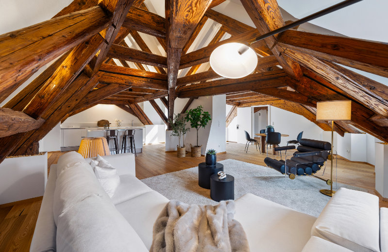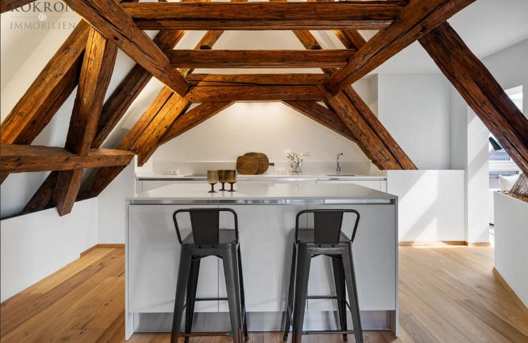Das Highlight dieser Wohnung sind die Holzbalken © Lukas Drobny/Property Photos GmbH
