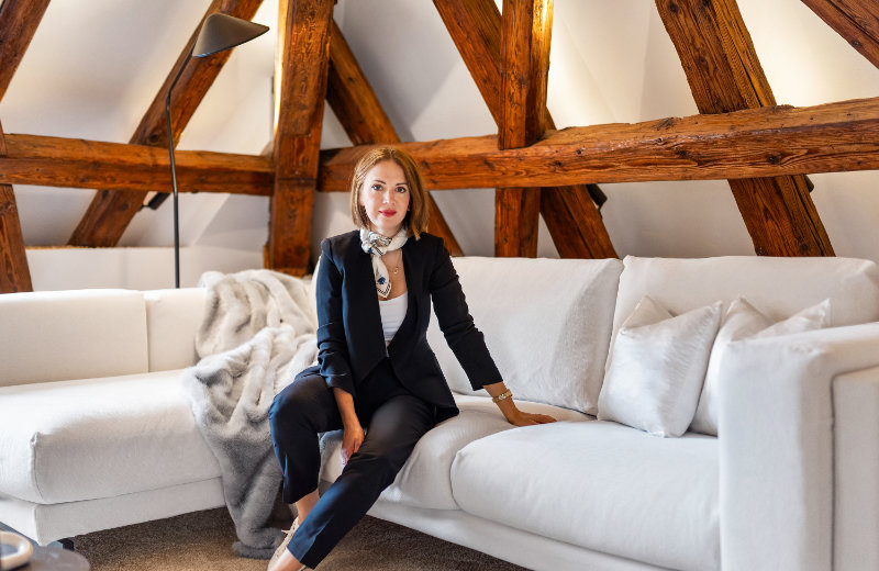 Maklerin Tatiana Sagmeister ist für die Vermarktung der exklusive Wohnung in der Walfischgasse verantwortlich. © Lukas Drobny/Property Photos GmbH