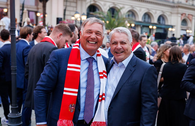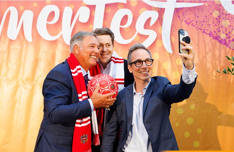Musikalisch umrahmt wurde der Abend von der Band Moodsart, die sommerliche Evergreens zum Besten gab. Kulinarisch wurden den Gästen ein vielfältiges BBQ, Nachspeisen, Eis sowie gut gekühlte Getränke kredenzt. Und da das Sommerfest genau am Tag des Fußball-EM-Achtelfinales Österreich gegen die Türkei stattfand, wurde die Partie live auf mehreren Screens und auf einer großen LED-Wall übertragen. Obwohl die ÖFB-Elf als Verlierer vom Platz ging, war die Stimmung auch nach dem Schlusspfiff bestens.
