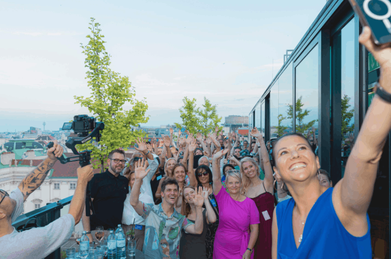 Auf der Dachterrasse trafen sich unter anderem Fatma Akyuez (Mindshare), Johannes Bachleitner (Neos), Attila Bako (Mindshare), Viktoria Barcal (Schwabe), Claudia Baumgarten (Cuubuus), Walter Berthold (Tchibo), Thomas Bokesz (IPG Mediabrands), Patrick Breynck (Belvedere Museum), Marion Buchberger (Billa), Michael Dörflinger (BSH Hausgeräte), Till Firit (Belvedere Museum), Hubert Freiler (Faber-Holding), Carola Frie (Mindshare), Birgit Gänsbacher (Eduscho Austria), Alexia Gasser (Polestar Automotive), Christoph Glöckl (NÖM), Magdalena Göls (Wavemaker), Alexandra Haeuser (Mindshare), Linda Haller (ÖBB Werbung), David Jandrisits (illycaffè), Andreas Janzek (Kleine Zeitung), Bence Jünnemann (Wolt), Martin Kathenbach (eventim), Karin Keplinger (voestalpine), Miriam Kickinger (voestalpine), Barbara Klinser-Kammerzelt (Dentsu), Christian Kohl (Hutchison Drei), Bernhard Kothmaier (Burgerstein), Markus Krivan (Unicredit), Gerald Kühberger (Handelsverband), Julia Limbeck (Maresi Austria), Stephanie Mair (Spar), Claudia Meller-Kessler (A1), Michael Metzl (redmail), Johanna Mölzer (Soravia), Rut Morawetz (A1), Vanessa Nimmrichter (Spar), Sandra Perdula (Wavemaker), Michael Perez (Schwabe), Heidi Petschnig (Generali), Antonella Pink (Erste Bank), Sandra-Alina Prail (Mindshare), Olivia Radwanski (Österreichische Post AG), Ramin Rahimi (Media1), Barbara Rauchwarter (APA), Leon Ring (Mindshare), Philip Rosenauer (PHH Rechtsanwälte), Gabriele Schillinger (Dentsu), Oliver Seidel (Fresenius Kabi), Maria Seltner (Hutchison Drei), Raphael Seppi (Dentsu), Claudia Sporer-Goshtai (A1), Martina Steindl (Kwizda), Lukas Steiner (Eduscho Austria), Riccarda Steiner (Liebherr), Romana Stelzl (Die Presse), Jennifer Swete-Peissl (Wavemaker), Albina Varga (Media1), Verena Venturini (ÖBB Werbung), Siegfried Weidlich (WKO Außenwirtschaft Austria), Christina Weigl (ARS Akademie) u. v. m.