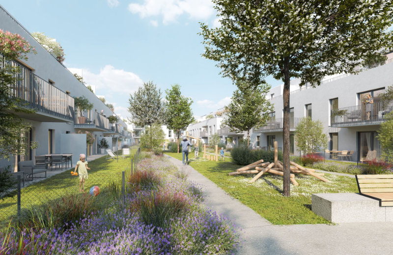 V.l.n.r.: Paul Steurer, WIGEBA, Kathrin Gaál, Vizebürgermeisterin und Wohnbaustadträtin, Karl Gasta, Bezirksvorsteher-Stv. und Katharina Klement, Wiener Wohnen © Stadt Wien/Markus Wache