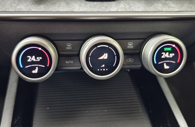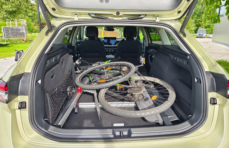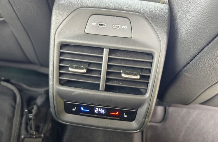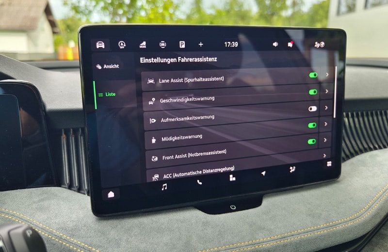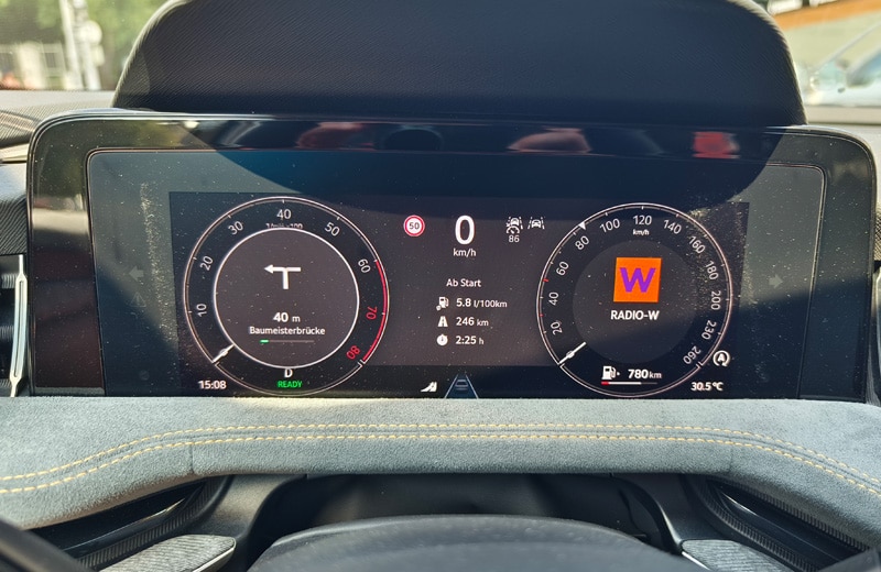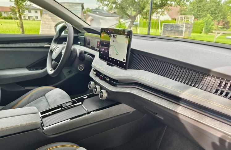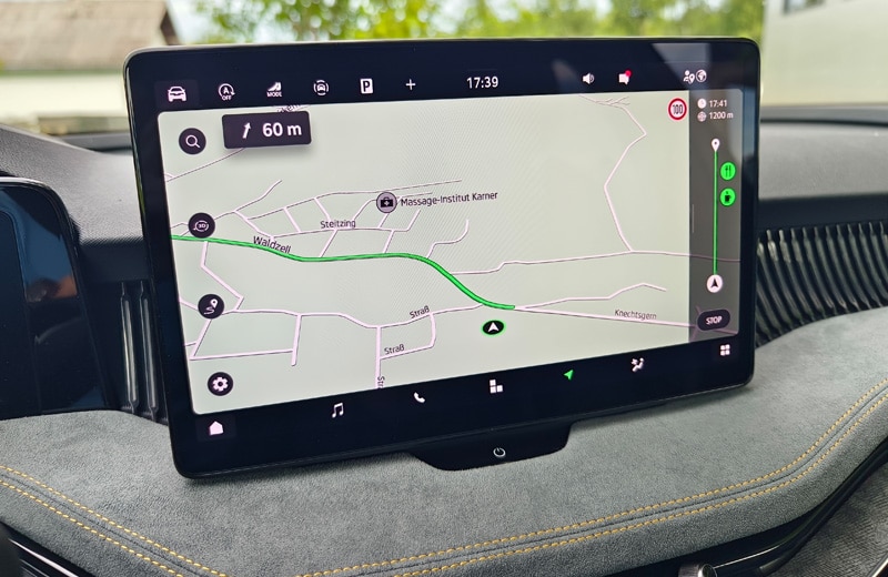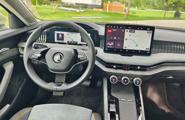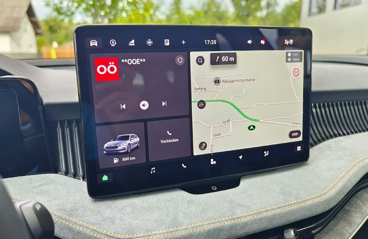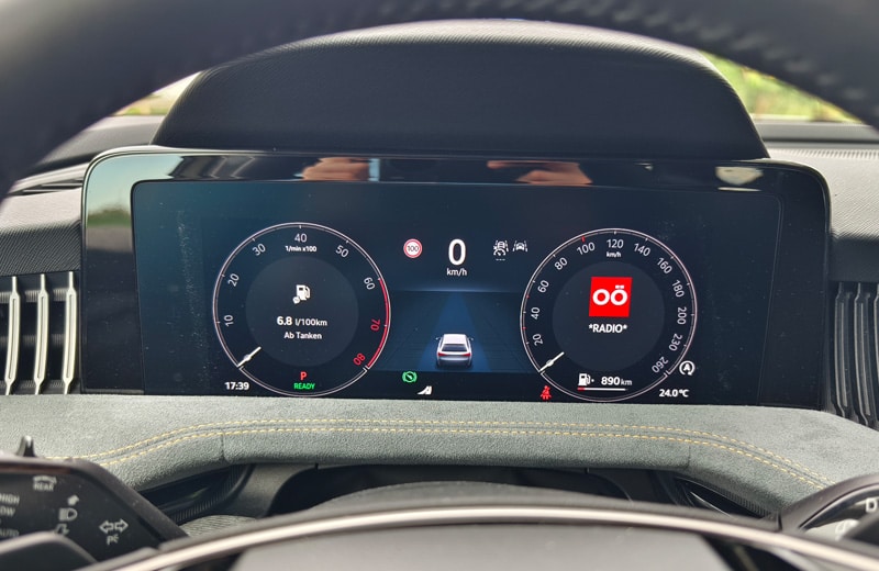 Den größten Sprung nach vorn macht der Superb eindeutig im Cockpit. Hier fungiert nun ein freistehender, bis zu 13 Zoll großer Touchscreen mit ordentlicher Auflösung als Schaltzentrale. Und während es bei diversen, auch konzerninternen Mitbewerber:innen kaum noch mechanische Knöpfe oder Drehschalter gibt, haben sich die schlauen Skoda-Ingenieur:innen etwas einfallen lassen, das aus unserer Sicht gerne abgekupfert werden darf: die sogenannten "Smart Dials". Dabei handelt es sich um drei digitale Drehregler, die mit unterschiedlichen Funktionen belegt sind. So lassen sich Lautstärke, Fahrmodi, die Zoom-Funktion für die Navikarte, die Sitzheizung oder die Klimaanlage, ohne von der Straße abgelenkt zu sein, intuitiv steuern. Chapeau Skoda! Ebenfalls hilfreich für die Bedienung sind das neue Zweispeichen-Lenkrad mit echten Tasten und Drehwalzen sowie die verständliche Sprachassistentin "Laura". Neu ist der an die Lenksäule gerückte Ganghebel für das DSG-Getriebe, der für eine aufgeräumte Mittelkonsole sorgt. Natürlich ist der Super Combi auch bestens vernetzt und verfügt über alle gängigen Assistenzsysteme - auch jene, die mittlerweile von der EU vorgeschrieben sind. Dazu zählt u.a. die etwas nervige Geschwindigkeitswarnung. Als sehr hilfreich und hervorragend funktionierend erwies sich der teilautonome Fahrassistent, den wir auf der Autobahn durchgehend im Einsatz hatten. Erwähnenswert sind noch die großen Ablagefächer, die bekannten Simply-Clever-Lösungen (Regenschirme in den Vordertüren, Trichter für die Scheibenwaschflüssigkeit, Mülltüte in der Seitentür, etc.) sowie die Telefonbox, welche Smartphones mit bis zu 15 Watt induktiv auflädt und sie zeitgleich kühlt. Während die breiten Lüftungsdüsen Geschmackssache sind, wirkt das vielfach konfigurierbare digitale Kombiinstrument etwas unelegant. Da es von der Hutze am Armaturenbrett nicht komplett abgedeckt wird, sieht es aus, als wäre es nachträglich hinzugefügt worden. Dafür stimmt die Verarbeitungsqualität und an den verbauten Materialien gibt es ebenfalls nichts zu kritisieren.