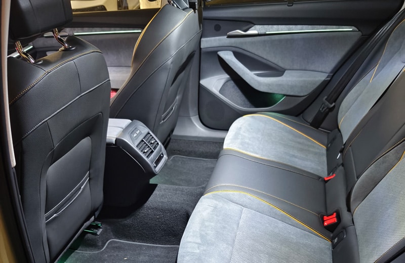Optisch ist der neue Superb auf den ersten Blick als solcher zu erkennen. Während bei der Vorgängergeneration der Designsprung noch ziemlich deutlich ausgefallen ist, handelt es sich dieses Mal um eine Evolution. Dennoch wirkt das Modell moderner als sein direkter Vorgänger, ohne dass dieser gleich alt aussieht. Vorn stechen neben dem neuen 2D-Logo auf der Motorhaube auch der achteckige Kühlergrill und die schärfer gezeichneten LED-Scheinwerfer ins Auge. Letztere wirken dank ihrer "Crystallinum-Elemente" fast schon edel. Im gestreckten Profil fällt auf, wie lang der Superb Combi tatsächlich ist. Am Heck gibt es keine Überraschungen. Hier setzen lediglich der große Skoda-Schriftzug und die (optionalen) LED-Heckleuchten mit animierten Blinkern sowie animierter Coming-/Leaving-Home-Funktion kleine Akzente. Dank der breiten, weit nach unten reichenden elektrischen Heckklappe und der niedrigen Ladekante erweist sich der große Tscheche als wahrer Lademeister. Mit 690 Liter Kofferraumvolumen – 30 mehr als im Vorgänger – eignet sich das Auto sogar in Vollbesetzung bestens für die Langstrecke. Klappt man die Fondlehnen um, entsteht eine 1.920 Liter fassende Ladehöhle. Damit ist man selbst für den Baumarkt oder das Möbelhaus gut gerüstet. Und wenn wir schon beim Platzangebot sind: Auf den Rücksitzen genießt man eine Beinfreiheit, die man ansonsten nur aus der Luxusklasse kennt. Hier können selbst Großgewachsene die Beine übereinander schlagen. Vorn ist ebenfalls mehr als ausreichend Platz in alle Richtungen. Zudem haben sich die im Testwagen verbauten Sitze als absolut langstreckentauglich erwiesen.