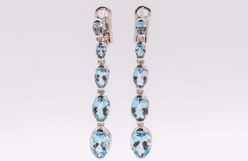 Atelier Heldwein Ohrgehänge mit Aquamarinen und Brillanten in 18kt. Weißgold € 5.890,-. © Heldwein