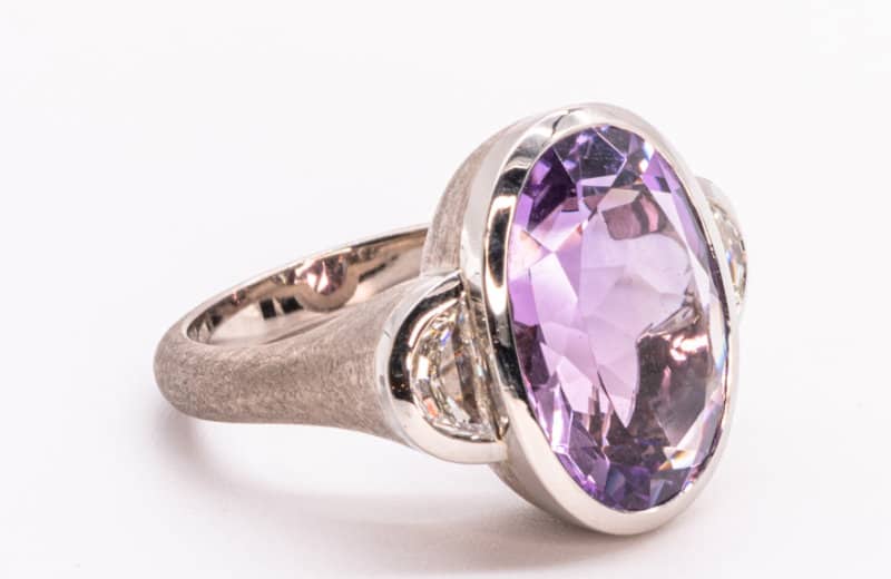Atelier Heldwein Ring mit Amethyst und halbmondförmigen Diamanten in 18kt. Weißgold und Platin € 11.950,-© Heldwein