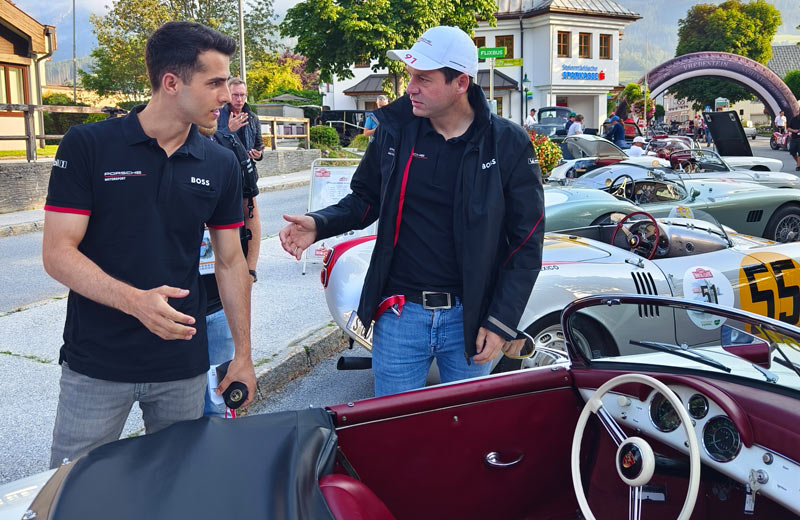 Apropos Le Mans. Neben Aksel Lund Svindal nahmen an der Ennstal Classic 2024 für Porsche auch der aktuelle Le Mans Sieger Richard Lietz (LMGT3-Kategorie) und der amtierende DTM-Champion Thomas Preining teil. Im prominent besetzten Starterfeld waren noch weitere (Motor-)Sportler:innen, Manager:innen und Promis wie Prinz Leopold von Bayern, Dieter Quester, David Brabham, Sigi Wolf, Michael Krammer, Thomas Dreßen oder Alex Kristan.