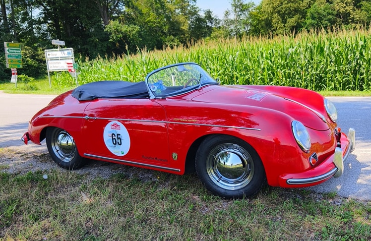 Wobei Marathon keineswegs untertrieben ist. Denn die mehr als 440 km lange Route führte abseits von Autobahnen über zahlreiche Nebenstraßen sowie Güterwege und beinhaltete einige Sonderprüfungen. Los ging es für das Team "Svindal-LEADERSNET" um exakt 8:02 Uhr auf der Startrampe in Gröbming, um 19:07 Uhr kamen wir an den Ausgangspunkt zurück. Als adäquates Fortbewegungsmittel diente ein roter Porsche 356 Speedster 1600, der aus dem deutschen Porsche-Museum ins Ennstal gebracht wurde. Eine der größten Überraschungen war, wie einfach sich der Oldtimer bewegen ließ. Fahrverhalten, Lenkung, das manuelle Viergang-Getriebe sowie Bremsen funktionierten einwandfrei und aufgrund des geringen Gewichts hatte auch der relativ schwache Boxermotor mit der vollbesetzten Fuhre keinerlei Probleme. Lediglich bei Stop-and-Go-Fahrten machte sich die brütende Hitze ab und an bemerkbar. Da flehte der luftgekühlte Vierzylinder förmlich nach Fahrtwind. Die größte Überraschung waren aber das Platzangebot und die durchaus langstreckentauglichen Sitze. Im 356 Speedster finden sogar großgewachsene Pilot:innen wie Aksel Lund Svindal ausreichend Platz und genießen guten Seitenhalt sowie eine ordentliche Polsterung. Letztere sorgte dafür, dass sich die Rückenschmerzen selbst nach den guten elf Stunden, von denen rund zehn im Auto verbracht wurden, in Grenzen hielten. Nur an das Fehlen der Gurte muss man sich bei jeder Abfahrt erneut gewöhnen.