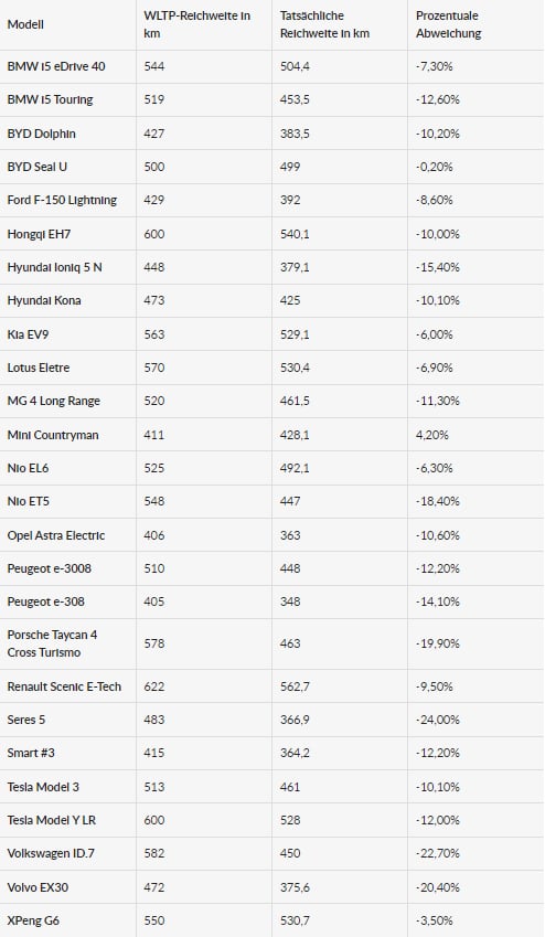 Abweichung zur WLTP-Angabe