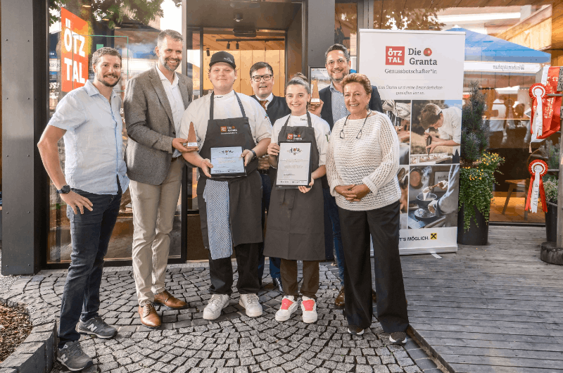 Um das Projekt erfolgreich umsetzen zu können, bedarf es entsprechenden Support der Ausbildungsbetriebe. Die mittlerweile 21 Nachwuchskräfte stammen aus elf Betrieben aus dem gesamten Ötztal. Vom Start an dabei kann allein das 5*-Haus Central in Sölden bereits auf acht Nachwuchskräfte verweisen, welche die Ausbildung durchliefen. Neueste Inhaber der "Granta" im Central-Küchenteam sind Sladana Dujakovic und Franz Scheiber. Newcomer im Kreis der teilnehmenden Ausbildungsbetriebe ist das Hotel Stern aus Längenfeld mit dem frisch gekürten "Ötztaler Genussbotschafter" Samuel Gritsch, dessen Küchenchef, Matthias Falk, das Ausbildungskonzept lobt: "Seine Eindrücke von den Ausbildungsmodulen waren sehr gut und äußerst interessant. Dass Samuel im Betrieb viel davon erzählt, ist wohl das beste Indiz für die Qualität dieser Zusatzausbildung." Die Vierte im Bunde ist Leonie Riml vom 4-Sterne-Superior-Hotel "Liebe Sonne" in Sölden.