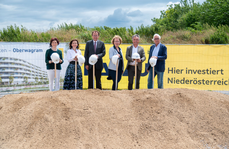 Auf das Projekt "Mühlbach Ost" folgt nun ein nächster Schritt in der zukunftsweisenden Entwicklung des Stadtteils Oberwagram in St. Pölten. Der Startschuss für das Projekt fiel mit einem feierlichen Spatenstich. Mit dabei waren Wohnbaulandesrätin Christiane Teschl-Hofmeister in Vertretung von Landeshauptfrau Johanna Mikl-Leitner, Bürgermeister Matthias Stadler, Habau Geschäftsbereichsleiter Hochbau Ost Thomas Reicher und Alpenland Obfrau Isabella Stickler.