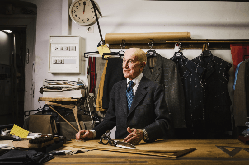 Seit bald fünf Jahrzehnten führt der Schneidermeister den Betrieb und steht mit 88 Jahren fast täglich von früh bis spät in aufrechter Haltung – Herr Niedersüß war früher Geräteturner und oft in den Bergen unterwegs – und selbstverständlich im perfekt sitzenden Maßanzug im Salon am Wiener Graben. Auch eine geheilte Krebserkrankung und vier Coronainfektionen ändern daran nichts. Solange der Strom an Neukunden nicht abreißt, will er nicht in den Ruhestand gehen. "Das dauernde Erfolgserlebnis motiviert mich unheimlich. Man wird eben weitergereicht", sagt er, "von einem guten Kunden zum nächsten." Und das ist ihm auch das Liebste an der Arbeit: der Kontakt zu den Menschen.Das Erfolgserlebnis, wenn jemandem etwas wirklich gut steht und der Anzug perfekt sitzt. Zuletzt war es ein Sportsakko, das Herrn Niedersüß so ein Erfolgserlebnis beschert hat. Das Nähen der Anzüge übernehmen mittlerweile fünf Schneider:innen in der Meisterwerkstatt, wo die edelsten Stücke von Hand gefertigt werden. Die Konfektionsware wird überwiegend nach Rudolf Niedersüß‛ Entwürfen in Italien gefertigt und erhält hier die letzten Anpassungen. Aber auch sein Verkaufstalent ist gefragt: Manchmal will der Kunde schon mit leeren Händen gehen, da findet Herr Niedersüß dann doch noch die passende Farbe, den perfekten Schnitt für den jeweiligen Herrn. Dazu braucht es einfach das richtige Gespür und viel Erfahrung. Bei Rudolf Niedersüß ist es fast ein halbes Jahrhundert. Damit das Handwerk des Herrenschneiders den höchsten Ansprüchen der Zunft auch weiterhin gerecht wird und nicht ausstirbt, arbeitet Rudolf Niedersüß gemeinsam mit der Hochschule für angewandte Kunst an einer "Kniže-Akademie": eine Ausbildungsstätte, an der das Schneiderhandwerk vermittelt werden soll.