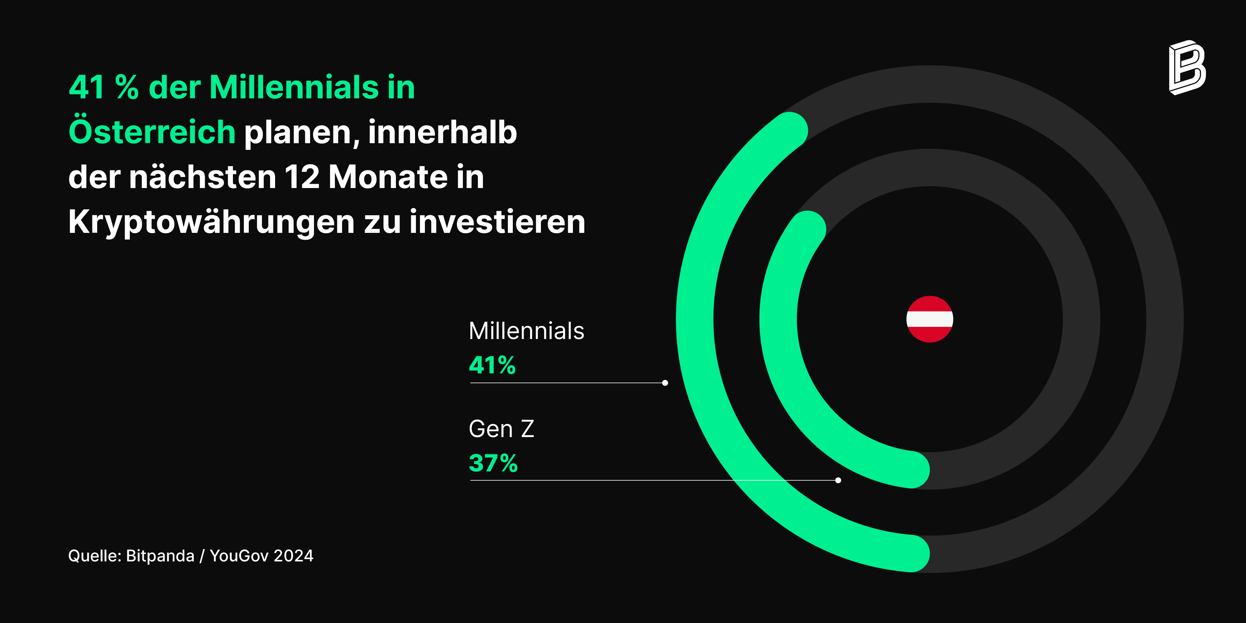 Die Pläne der jüngeren Generationen, was zukünftige Investitionen angeht, sehen wie folgt aus: 37 Prozent der Gen Z und 41 Prozent der Millennials aus Österreich geben an, innerhalb der nächsten 12 Monate in Kryptowährungen investieren zu wollen. Diese Zahlen würden das wachsende Interesse und Vertrauen in digitale Währungen bei den jungen Österreicher:innen verdeutlichen.