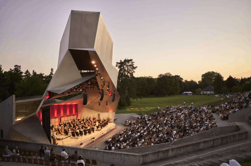 Die zentralen Spielstätten dieses Festivals sind die Open-Air-Bühne Wolkenturm inmitten des 32 Hektar großen Schlossparks und der Konzertsaal Auditorium. Von Mitte August bis Anfang September stehen heuer Gastorchester auf dem Programm wie Pittsburgh Symphony Orchestra, dem Filarmonica della Scala di Milano, dem Orchestre National de France und dem Bayreuther Festspielorchester.