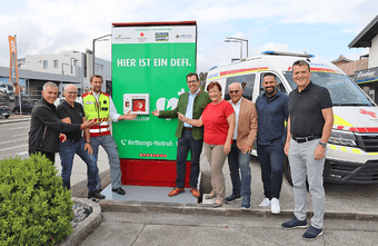 Die Kooperation zwischen der Gemeinde Wals-Siezenheim, dem Roten Kreuz, Lions Club Wals, Reifen Lindner und der Agentur beschaffte einen neuen Lebensretter in der Bundesstraße 10.