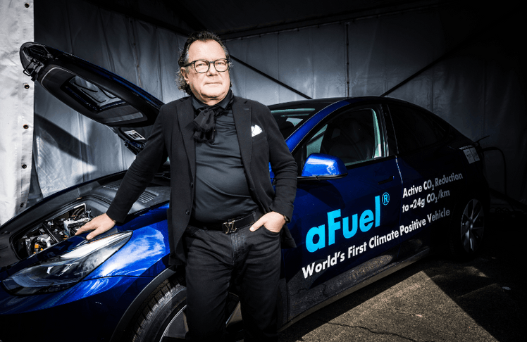 Im Gespräch. Das Interview fand Ende April beim Internationalen Wiener Motorensymposium in einem umgebauten Tesla statt, der von Obrist mit einem Tank für aFuel® ausgestattet wurde © Lukas Ilgner