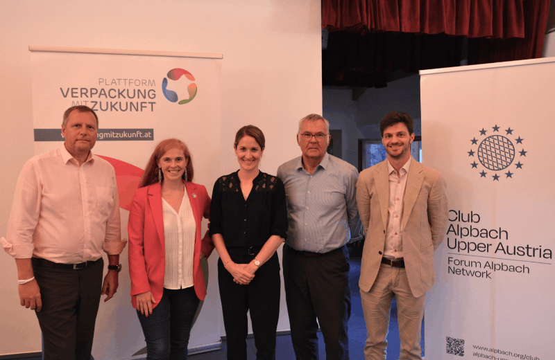 Wie lässt sich also der Klimaschutz mit der Verpackung und der Umweltschutz mit dem Verpackungsverzicht in Einklang bringen? Eine Antwort darauf hat das European Forum Alpbach gefunden: Kreislaufwirtschaft ist das Schlüsselwort. Vor diesem Hintergrund haben sich die Expert:innen und anwesenden Gäste in Alpbach getroffen. Moderiert wurde die Diskussionsrunde, an der Vertreter:innen führender Unternehmen der Verpackungsindustrie und des Lebensmittelhandels teilnahmen, von Sandra Pechac, Geschäftsführerin der Plattform Verpackung mit Zukunft, und Michael Richter, Vorstandsmitglied des Clubs Alpbach Upper Austria. Gemeinsam sprachen sie über die Herausforderungen und Möglichkeiten des nachhaltigen Konsums.