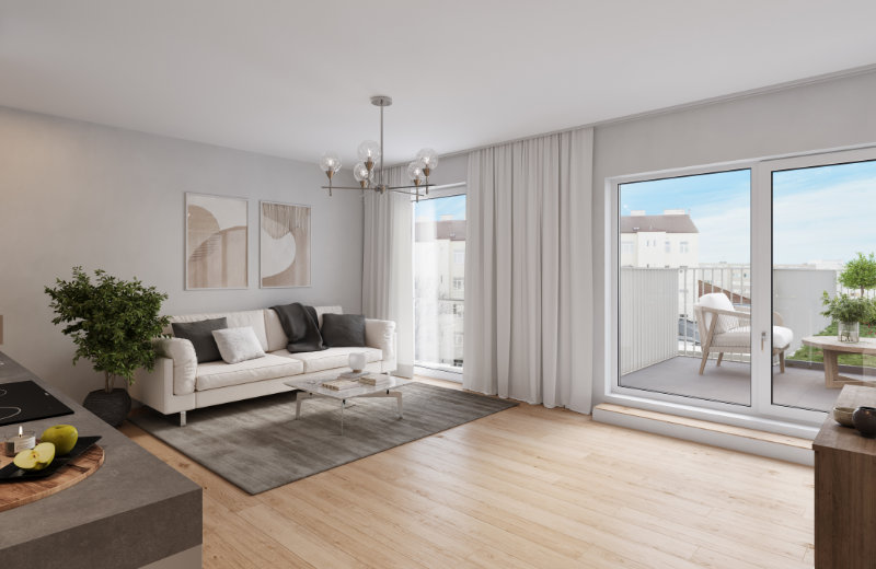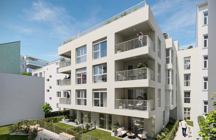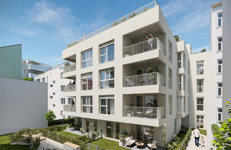 Auf dem 1.300 Quadratmeter großen Grundstück entstehen zwei Wohnhäuser mit 22 bzw. 24 Apartments mit Wohnflächen von 47 bis 165 Quadratmetern. © Real Agency