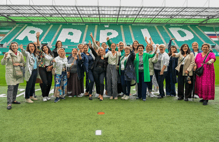 Frau in der Wirtschaft (FiW) ist ein Netzwerk der Wirtschaftskammer Wien für Frauen – von der Kleinstunternehmerin bis zur Topmanagerin. Dabei soll FiW die Interessen von über 54.000 Wiener Unternehmerinnen vertreten und mit umfassendem Service unterstützen. Vor einigen Tagen besuchte das Netzwerk im Rahmen der Initiative "Frau in der Wirtschaft goes backstage" die Frauenmannschaft des SK Rapid.