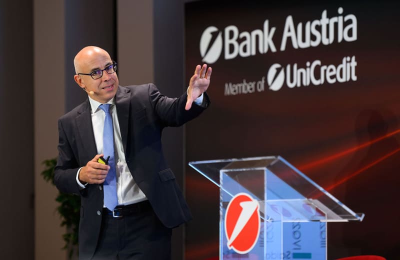 Das jüngste Bank Austria Forum im Headquarter der UniCredit Bank Austria in Wien stand ganz im Zeichen der wirtschaftlichen Herausforderungen im "Superwahljahr 2024". Das hochkarätige Podium, moderiert von UniCredit Bank Austria-Chefökonom Stefan Bruckbauer setzte sich aus WIFO-Chef Gabriel Felbermayr, UniCredit-Topökonom Erik Nielsen und Robert Zadrazil, Country Manager Österreich von UniCredit, zusammen.