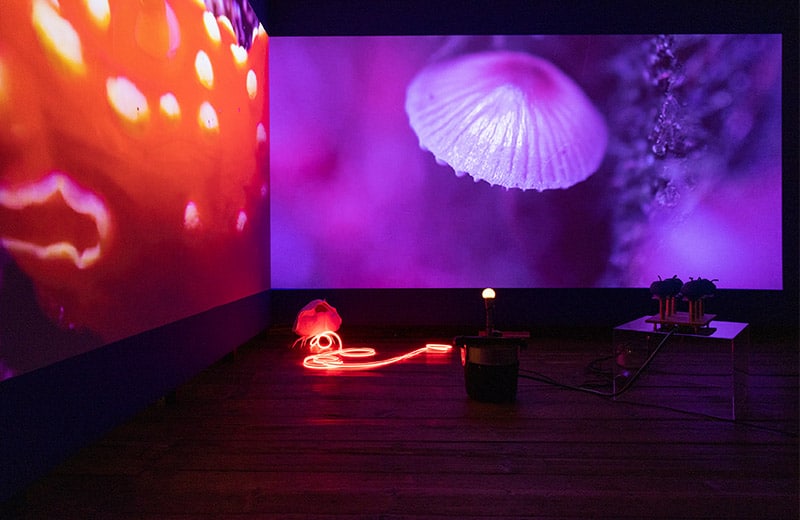 Die eigens für die Ausstellungsräume des KunstHausWien entwickelte Schau von Anne Duk Hee Jordan entfaltet einen multisensorischen Parcours, der die Bedeutung des Unbekannten und Unsichtbaren in der Natur zum Thema macht. Ausgehend von der Erdurzeit, in der erstes Leben dank einer sauerstoffreichen Atmosphäre entstand, verwandelt sich die Szenerie in eine magisch fluoreszierende Unterwasserwelt, die Besucher:innen in die Tiefen eines von fantastischen Kreaturen und leuchtendem Phytoplankton belebten Ozeans eintauchen lässt. Die Ausstellung ist noch bis 26. Jänner 2025 zu sehen.