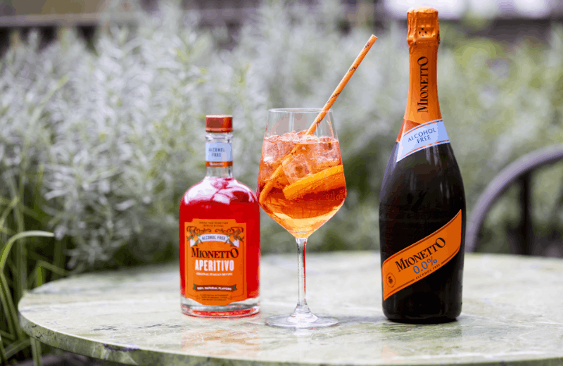 Der Mionetto 0,0% Alkoholfrei besticht mit fein perlendem Mousseux und erfrischend fruchtigem Geschmack. Er eignet sich für Antipasti, Aperitifs, Krustentiere, Muscheln, Pasta und Risotto. Der Mionetto Aperitivo Alkoholfrei wiederum verspricht authentischen bittersüßen Geschmack. Er vereint zu 100 Prozent natürliche Aromen – von der Süße der roten Orange über die subtile Würze von Lakritz und die frische Säure der Zitrusfrüchte bis zu Bitternoten der Botanicals und Orangen. In Kombination mit Mionetto 0,0% Alkoholfrei präsentiert sich eine erfrischende alkoholfreie Variante des beliebten Mionetto Aperitivo Spritz.