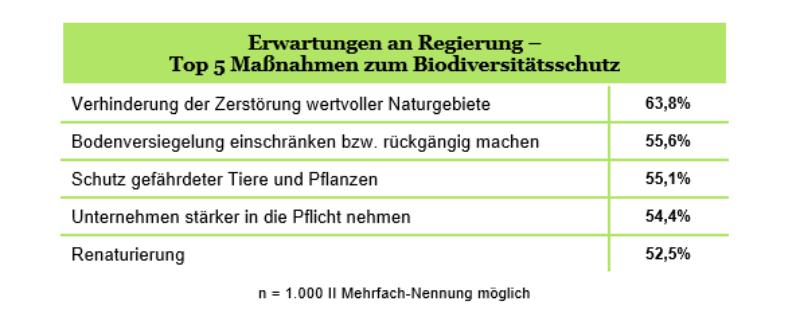 Erwartungen an Regierung – Top 5 Maßnahmen zum Biodiversitätsschutz © Marketagent