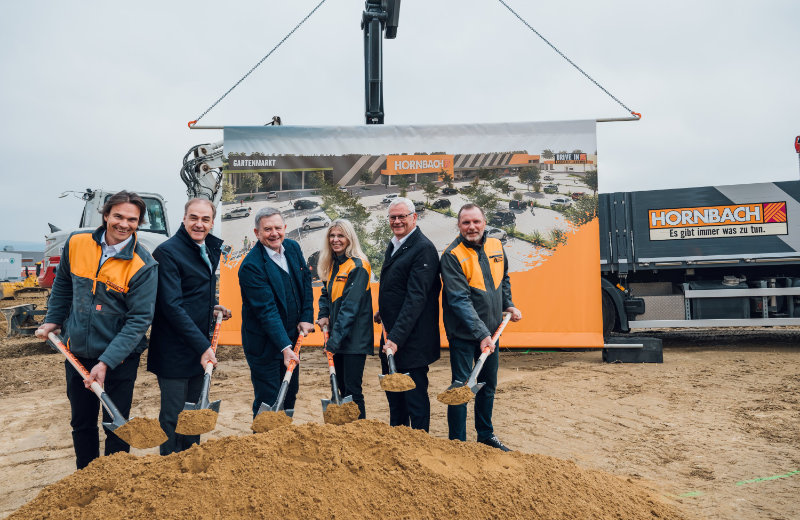 V.l.n.r.: Christian Schmid (Kaufmännischer Geschäftsführer Hornbach Österreich), Leonhard Schneemann (Wirtschaftslandesrat), Erich Harsch (Vorstandsvorsitzender Hornbach Baumarkt AG), Alexandra Klima (Einkaufsleiterin & Geschäftsführerin Hornbach Österreich), Thomas Steiner (Bürgermeister Eisenstadt) und Marek Thiemel (Landesgeschäftsführer Hornbach Österreich) © Niklas Schnaubelt