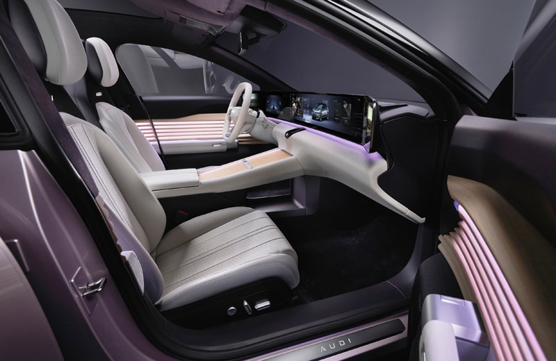 Die technischen Zutaten, die das Showcar ins Rennen schickt, klingen vielversprechend. Mit einer Länge von 4.870 mm, einer Breite von 1.990 mm und einer Höhe von 1.460 mm sowie einem Radstand von 2.950 mm positioniert sich das E concept als vollelektrischer Sportback. Er ist also das chinesische Pendant zum A6 e-tron Sportback, der hierzulande in Kürze an den Start geht (LEADERSNET berichtete). Zwei Elektromotoren, je einer an der Vorder- und Hinterachse, liefern eine Gesamtleistung von 570 kW. Zusammen mit dem Allradantrieb (quattro) soll das den Sprint von 0 auf 100 km/h in 3,6 Sekunden ermöglichen. Das Konzeptfahrzeug ist mit einem 100-kWh-Akku ausgestattet, der bei voller Ladung eine nach chinesischer Norm kalkulierte Reichweite von mehr als 700 Kilometern bieten soll. Wie Q6 e-tron und A6 e-tron verfügt auch das E concept über eine 800-Volt-Architektur für schnelles Laden. Laut Audi sollen zehn Minuten am Schnellader für 370 Kilometer Reichweite genügen.