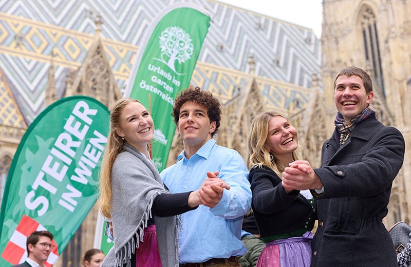 "Die Wiener Tanzschulen haben zum Quadrille tanzen geladen. Beim Faschingsauftakt des Vereins der Steirer hat die Murtaler Kirtagsmusi gespielt. Sie hat Steirer, Passanten und Touristen, die geplattelt und dann Polka getanzt haben, mit zünftigen und mitreißenden Musikstücken begleitet. Jetzt sind wir perfekt auf den Steirerball am 10. Jänner 2025 eingestimmt", sagt Andreas Zakostelsky, Obmann des Vereins der Steirer in Wien: "Der Faschingsauftakt ist eine lieb gewonnene Tradition geworden, mit der Freundinnen und Freunde des Steirerballs in die Wiener Ballsaison starten." Stefan Schindler, Geschäftsführer des Tourismusverbands Erlebnisregion Osteiermark: "Als Vertreter des Oststeiermark Tourismus und Partner des Steirerballs 2025 ist es uns eine besondere Freude heute hier mit unseren Musikanten, den Tänzerinnen und Tänzern auf dem Stock-im-Eisen-Platz dabei zu sein. Es freut uns, gemeinsam mit dem Verein der Steirer die fünfte Jahreszeit, einzuläuten und damit die Vorfreude auf den Ball am 10. Jänner 2025 anzuheizen."
