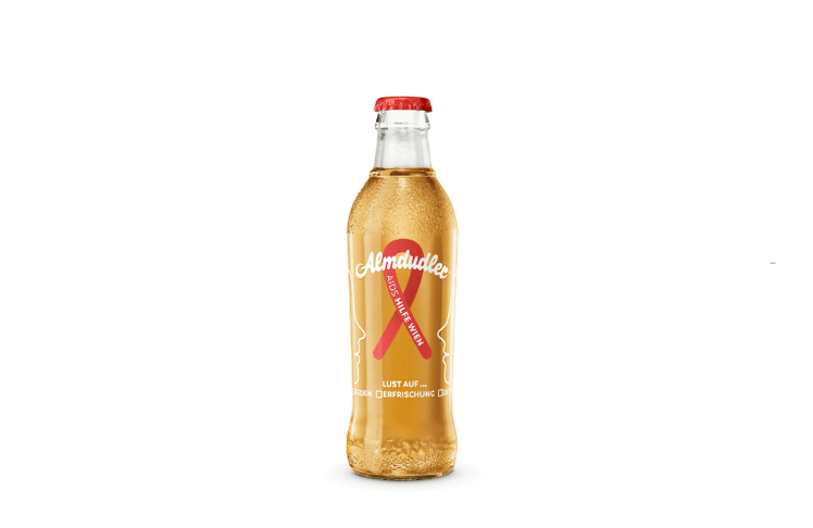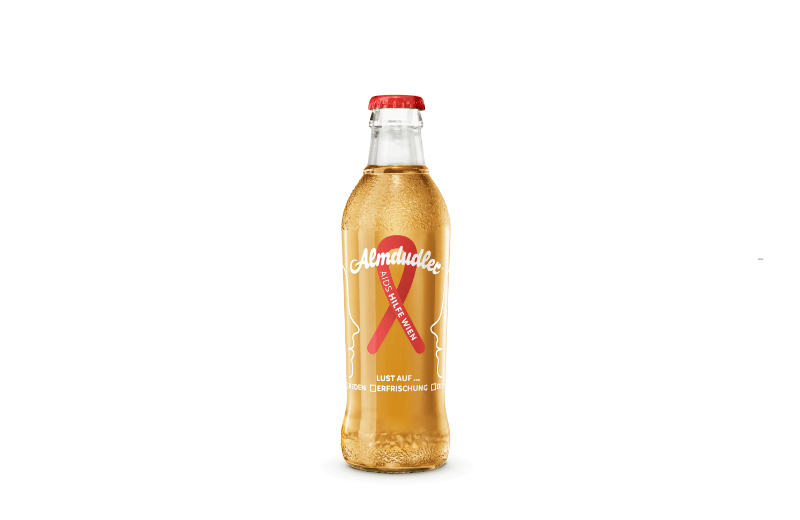 Almdudler mit neuem Flaschendesign zum Welt-Aids-Tag