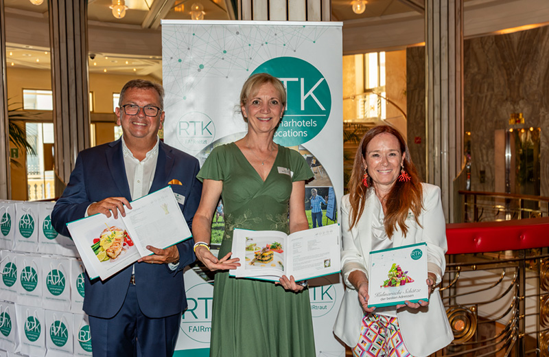 v.l.n.r.: RTK-Präsident Thomas Ziegler, RTK-Vizepräsidentin Ulli Retter und RTK-Geschäftsführerin Uschi Huber mit dem neuen RTK-Kochbuch © RTK/Löffler