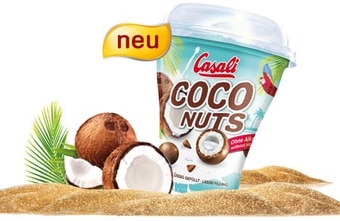 Neue Schoko-Kokos-Kugeln mit flüssigem Kern und weißen Kokosraspeln.
