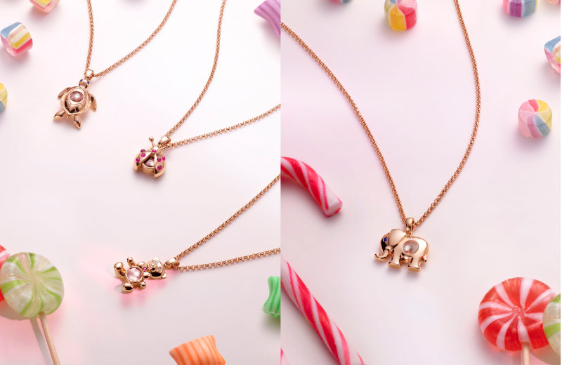 Weiche, sanft gerundete Linien; Motive, die man überall auf der Welt versteht; tanzende Diamanten: Niedliche kleine Tieranhänger setzen als neue Glücksbringer die Tradition der Happy Diamonds und all ihrer Kreationen fort. Ein Teddybär, ein Marienkäfer, ein Elefant und eine Schildkröte in 18 Karat Ethischem Roségold wurden mit Liebe gestaltet und werden als Anhänger ganz nah am Herzen getragen.