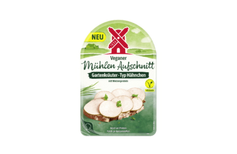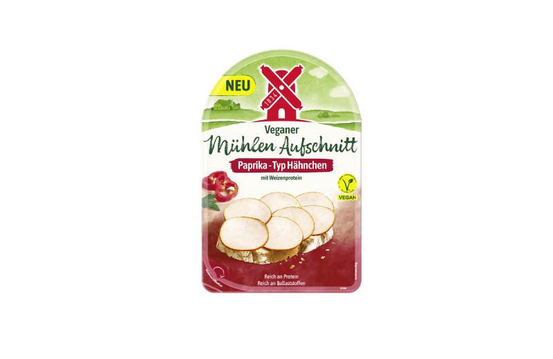 Die beiden neuen veganen Aufschnitte sind seit November 2024 Teil des Produktportfolios und umfassen die Sorten Paprika sowie Gartenkräuter. Dabei handelt es sich um kleine, dicke Scheiben aus Weizenprotein, die geschmacklich an einen Aufschnitt aus Hähnchenbrust erinnern. Geschmacklich aufgewertet werden die Weizenproteinscheiben durch den jeweiligen Gewürzrand.