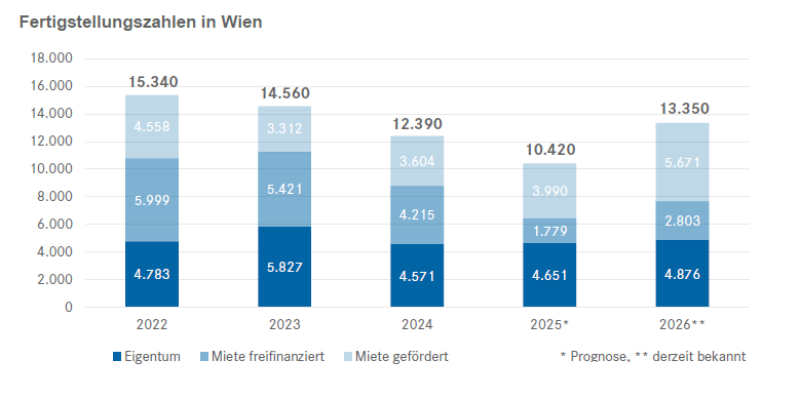 Aktuell ist der Wohnungsmarkt in Österreich durch eine markante Entwicklung geprägt. 2024 wurde ein deutlicher Rückgang neuer fertiggestellter Mietwohnungen um fast ein Viertel gegenüber dem Vorjahr verzeichnet und ist auf fast circa 4.200 Einheiten gesunken. Dieser Trend soll sich in diesem Jahr noch mehr verschärfen und man rechne mit einem Rückgang von nahezu 60 Prozent gegenüber 2024. Circa 1.800 Wohneinheiten sind zu erwarten. Diese Entwicklung markiert den stärksten Einbruch im letzten Jahrzehnt und bringt den Mietwohnungsmarkt weiter unter Druck.