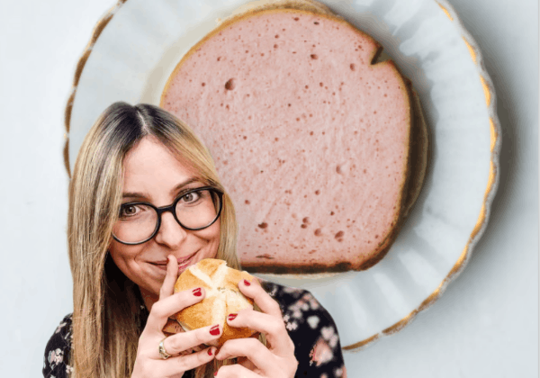 Gustl, der Erste. Nadina Ruedl bot ihren veganen Leberkäse anfangs als Streetfood an. 2022 gelang ihr die Listung im Supermarkt © Robert Harson