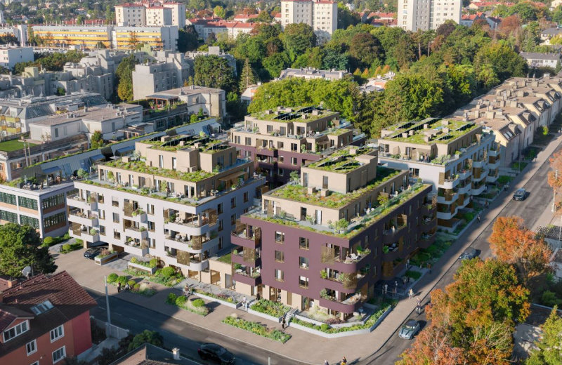 In Wien-Liesing, zwischen Rosenhügel und Liesingbach, eine Lage, die die Vorzüge der Stadt und die Nähe zur Natur vereinen soll, entsteht ein Ensemble aus vier neuen Wohngebäuden sowie einem Bestandsgebäude. Jede Einheit verfügt über eine private Freifläche in Form eines Eigengartens, eines Balkons oder einer Terrasse. Die Wohnungsgrößen der insgesamt 130 Einheiten bewegen sich zwischen einem bis fünf Zimmern. Jede Wohnung verfügt außerdem über ein privates Kellerabteil, das auch genügend Platz für das eigene Fahrrad bieten soll. Die Tiefgarage mit der direkten Liftfahrt in das jeweilige Gebäude soll Stellplätze für Pkws und Motorräder, teilweise mit E-Ladestationen ausgestattet bzw. vorbereitet, schaffen.