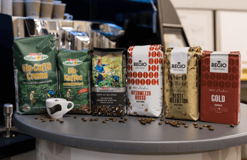 Unterstützt wird das ganze von der heimischen Rösterei Regio, die seit 1958 zu Spar gehört. Ihren Sitz hat sie in Marchtenk in Oberösterreich. Mit über 30 Sorten in verschiedenen Blends und Röststufen will Regio Kaffee für jeden Geschmack bieten. Über 4.000 Tonnen Röstkaffee verlassen jährlich die Rösterei. Sämtliche Kaffees der Spar-Eigenmarke stammen also aus der Marchtenker Rösterei.