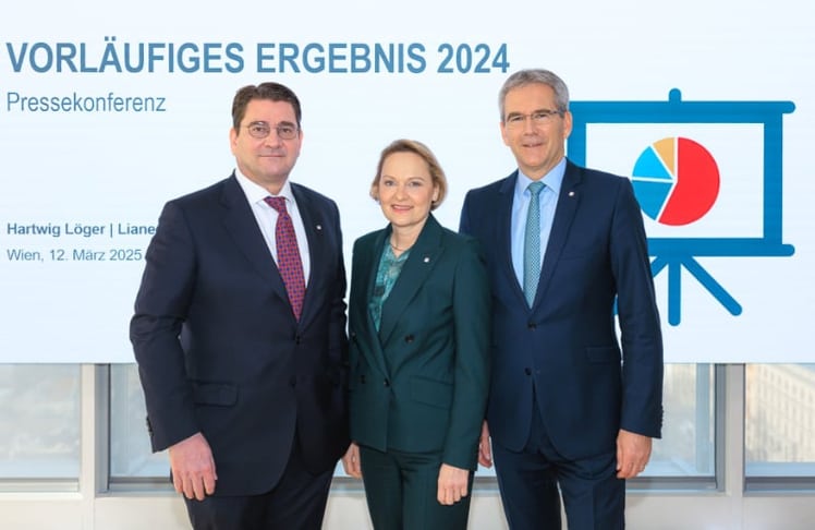 Mit einem Prämienvolumen von 15,2 Milliarden Euro und einem Plus von zehn Prozent zu 2023 konnte die Vienna Insurance Group (VIG) im Vorjahr eine starke Ergebnissteigerung verzeichnen. Das Ergebnis vor Steuern (EBITDA) fiel auf 881,8 Millionen Euro (+14 Prozent). Präsentiert wurde das Ergebnis von Hartwig Löger, Generaldirektor und Vorstandsvorsitzender der VIG, Peter Höfinger, stellvertretender Generaldirektor, und Liane Hirner, Finanz- und Risikovorständin der VIG, im Rahmen eines Pressegesprächs am Mittwoch im 20. Stock des Wiener Ringturms.