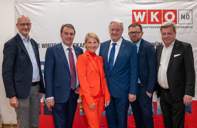 LEADERSNET.tv holte neben Wolfgang Ecker, WKNÖ-Präsident und Alfred Babinsky, Bezirksstellenobmann Hollabrunn WKNÖ, Bürgermeister Hollabrunn, auch noch Florian Hengl, Fachgruppenobmann Stein- und Keramische Industrie WKNÖ, Günther Kober, Bundes- und Landesinnungsmeister-Stv. der Elektrotechniker WKNÖ, Herbert Waltner, Gebäudetechnik Waltner GmbH, Helmut Aichinger, Aichinger Hoch- und Tiefbau GmbH und Petra Triebl-Hasenkopf, Steinmetzmeister Hasenkopf, vor die Kamera.