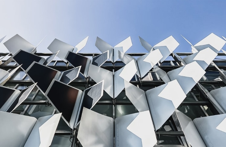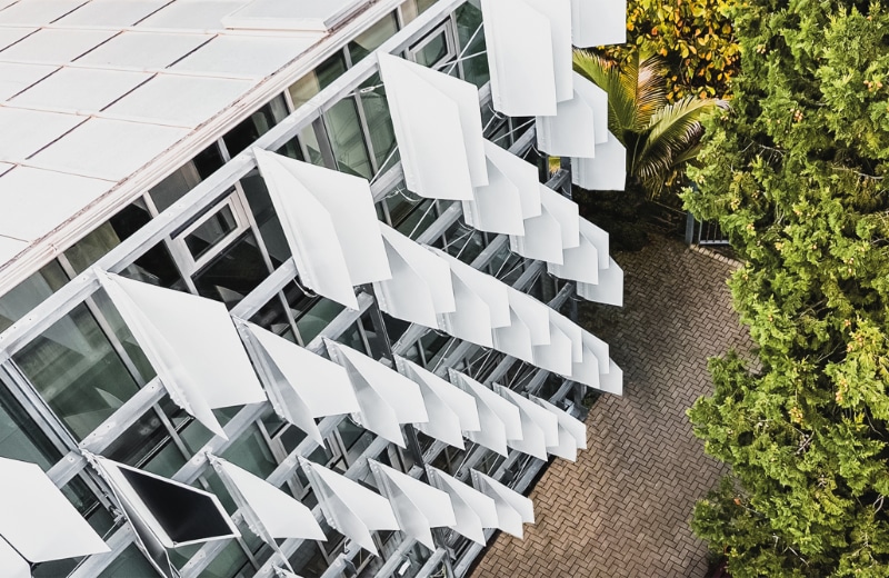 Das Besondere am innovativen Fassadensystem ist nicht nur seine smarte Steuerung, sondern auch sein raffinierter Materialmix und die revolutionäre Funktionsweise. Konkret nahm sich das Forschungsteam ein Beispiel an den Flügeln eines Insektes sowie an den Blattbewegungen einer Wasserpflanze. Damit entwickelte man Beschattungselemente, die mit fließenden Bewegungen wie Schmetterlingsflügel wirken und mit einem Schließmechanismus an fleischfressende Pflanzen erinnern. Dabei richten sich die Elemente zur effizienten Energiegewinnung optimal und flexibel nach dem Verlauf des Sonnenstandes aus, wodurch gleichzeitig die Glasfassade effektiv beschattet werden kann.