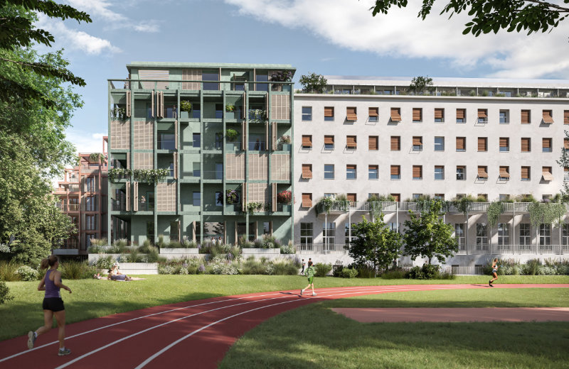 In einem Holz-Hybrid-Neubau sollen 35 Eigentumswohnungen entstehen © BWM