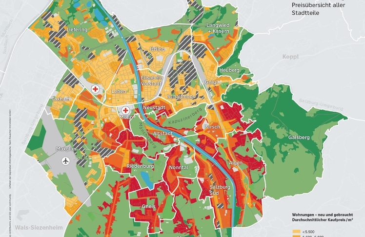 Rauscher: Auch das können Sie besonders gut an unserer Wohnlagenkarte der Stadt Salzburg unterbei erkennen: Besonders beliebt sind Panoramalagen mit Sicht auf die Festung und in die Berge, wie zum Beispiel in Aigen und Parsch, wo man in prestigeträchtiger Nachbarschaft und im Naherholungsgebiet Gaisberg hohe Privatsphäre genießt. Auch Morzg, Gneis oder Leopoldskron sind sehr begehrt, weil sich hier herrliche Ruhelagen am weitläufigen Grünland bzw. in Weihernähe finden. Die Stadtteile Nonntal und Riedenburg profitieren dafür von ihrer Altstadtnähe und der fußläufigen Anbindung zum Festspielbezirk.