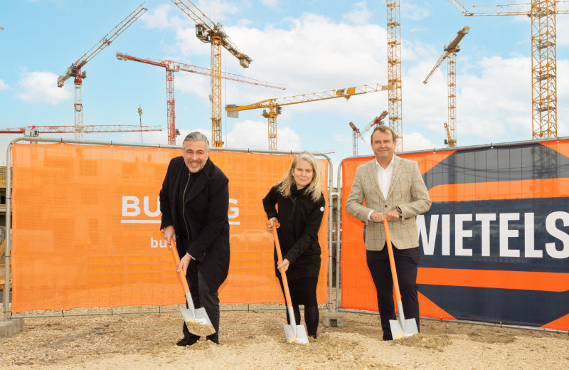 Symbolischer erster Spatenstich (v.l.n.r) Buwog-Geschäftsführer Andreas Holler, Architektin Lina Streeruwitz und Christian Pichler, Prokurist und Bereichsleiter, Swietelsky © Buwog/Stephan Huger