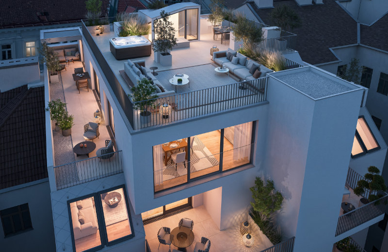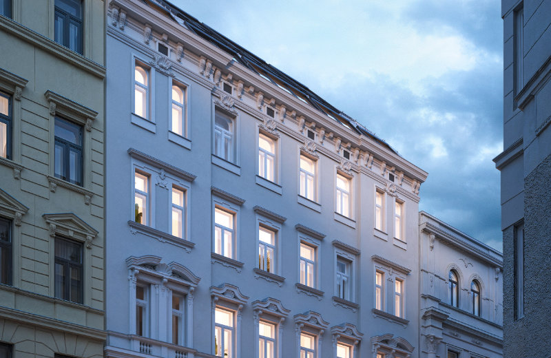 In dem aufwendig revitalisierten Gründerzeithaus entstehen 14 Eigentumswohnungen, darunter drei Dachgeschoßwohnungen © 3SI Immogroup/JamJam